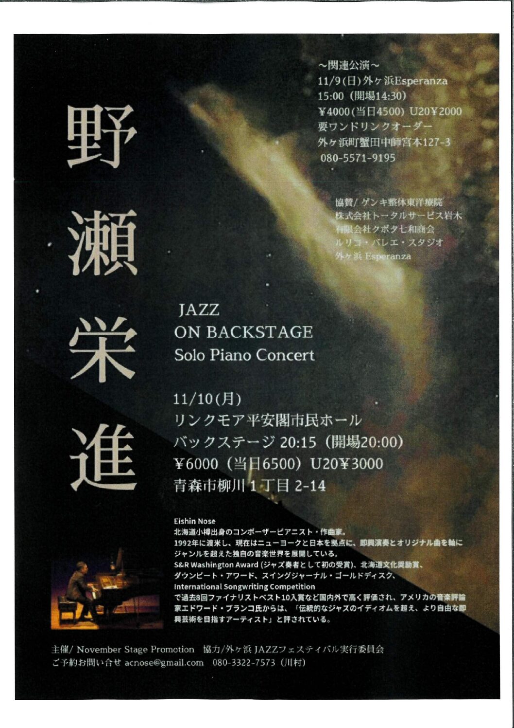野瀬栄進 JAZZ ON BACK STAGE Solo Piano Concert