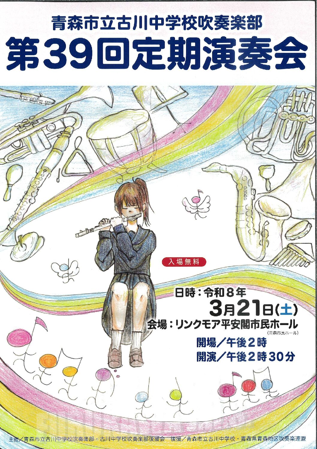 | 主催 | 青森市立古川中学校吹奏楽部 ☎ 017-776-4622 |
