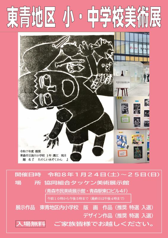 | 主催 | 東青地区小学校教育研究会図画工作科部会・東青地区中学校教育研究会美術部会 ☎ 017-788-5010 |